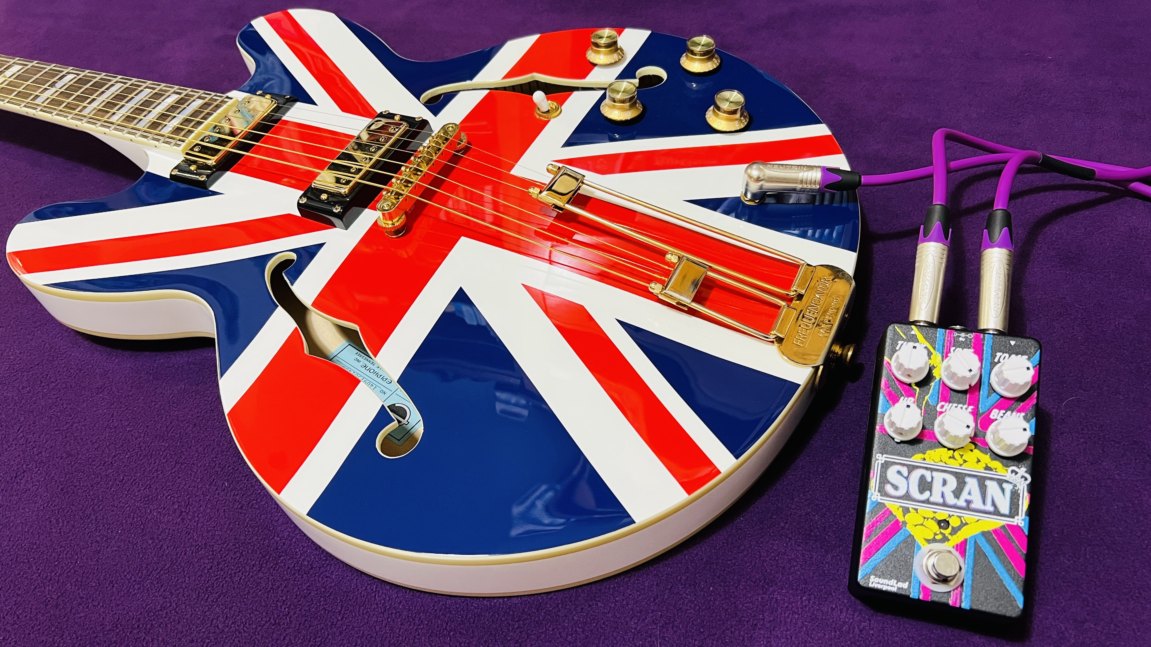 Although my media output is primarily Queen and Brian May related, I enjoy listening to many different bands and like many millions of people all around the world, I was captivated by the resurgence of interest in Oasis resulting from their planned 2025 world tour. This motivated me to arrange a visit to Oasis design central, MicroDot Creative in Kendal, Cumbria on our February break and produce a large framed display of the reissued Definitely Maybe 7″ vinyl singles and a quantity of 1996 fabric tour passes I bought from eBay. I bought a very good value “Scran” overdrive pedal which is designed, hand wired and assembled by SoundLad in Liverpool and makes Oasis tones readily accessible.