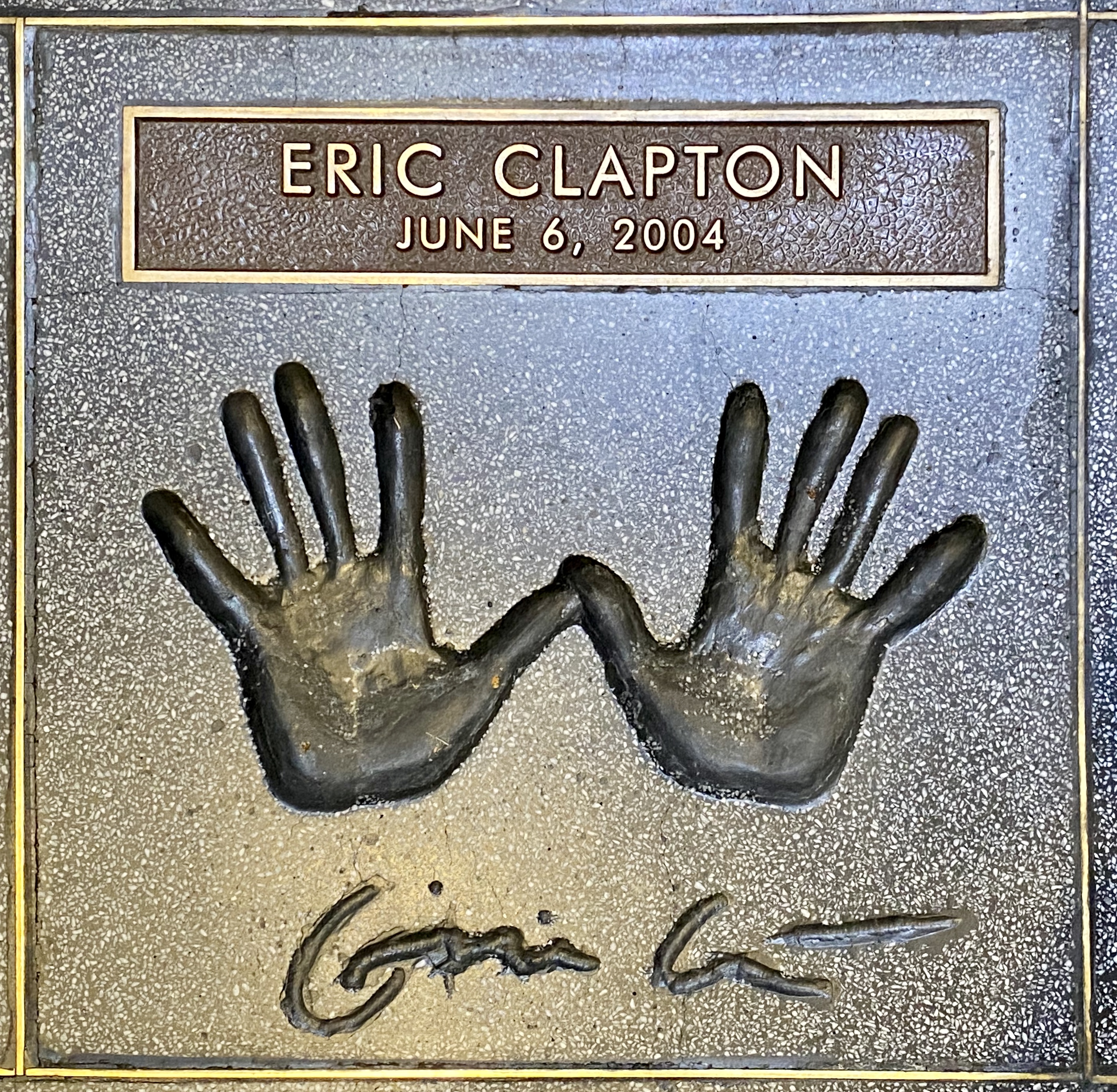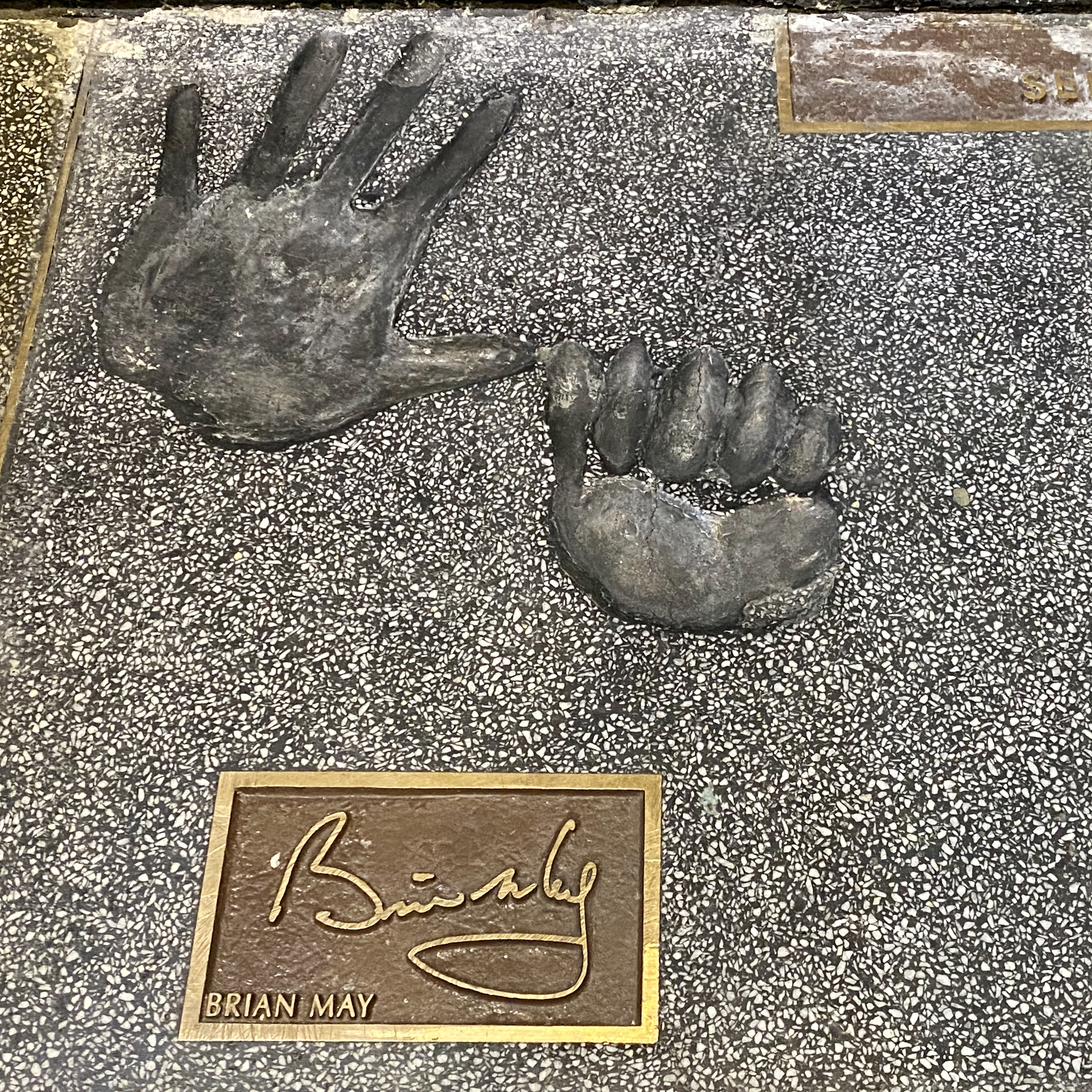 Along with Norman’s Rare Guitars on Ventura Boulevard, Tarzana, Guitar Center in Hollywood should be on every guitar player’s pilgrimage route but we only had time in our limited schedule to visit one of these stores and get an evening meal. We started our visit by checking out the handprints of various famous guitar players set into the sidewalk outside the main entrance. As you can see from the pictures, my guitarist chromosomes consist of three quarters blues and one quarter Queen. I think there’s a few rogue DNA strands of progressive rock in there too.