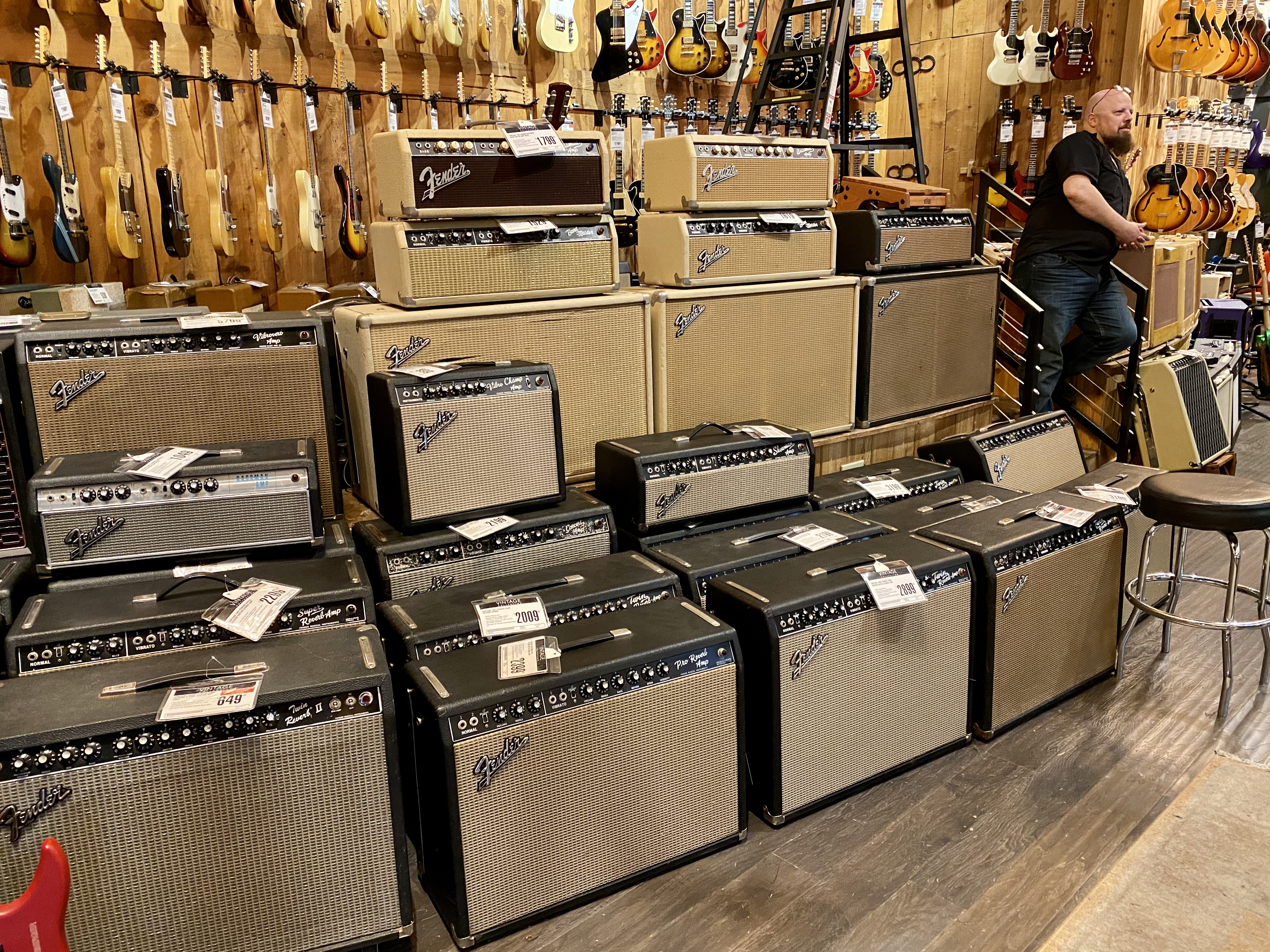Guitar Center’s Hollywood store also has a display of memorabilia such as the late Eddie van Halen’s homemade red Kramer guitar, Stevie Ray Vaughan’s denim jacket, Keith Moon’s drum kit, and platform boots from KISS. A guitar store wouldn’t be a guitar store without a bunch of talented kids occupying the aisles shredding away testing their preferred gear. They have a wall of effects which is only slightly larger than Luke’s own pedalboard but the highlight was the core of the premises which contains rare and high end guitars and amplifiers.