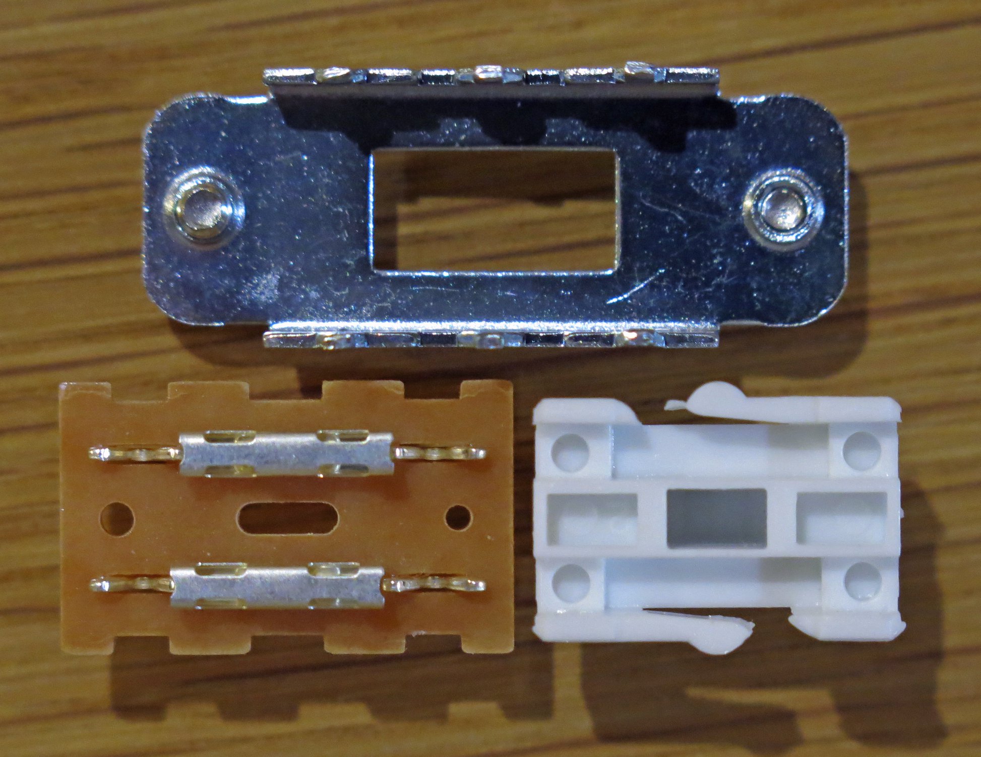 Using the high resolution images and dimensions that I posted on the web forum, Tim Grocott from Norwich, U.K. became interested in taking the project forward to make a set of replica Jeanrenaud switches for his proposed Red Special replica build. We collaborated on a design and he got some metal chassis laser cut from aluminium sheet by Sorb Engineering – a company I had previously used to make a StewMac style stainless steel fret slotting template – and worked up the plastic actuator design and got them 3D printed. I cut the bases (‘wafers’) from 2.0 mm phenolic resin sheet (Tufnol) and thicknessed these down to the original dimension of 1.8 mm.