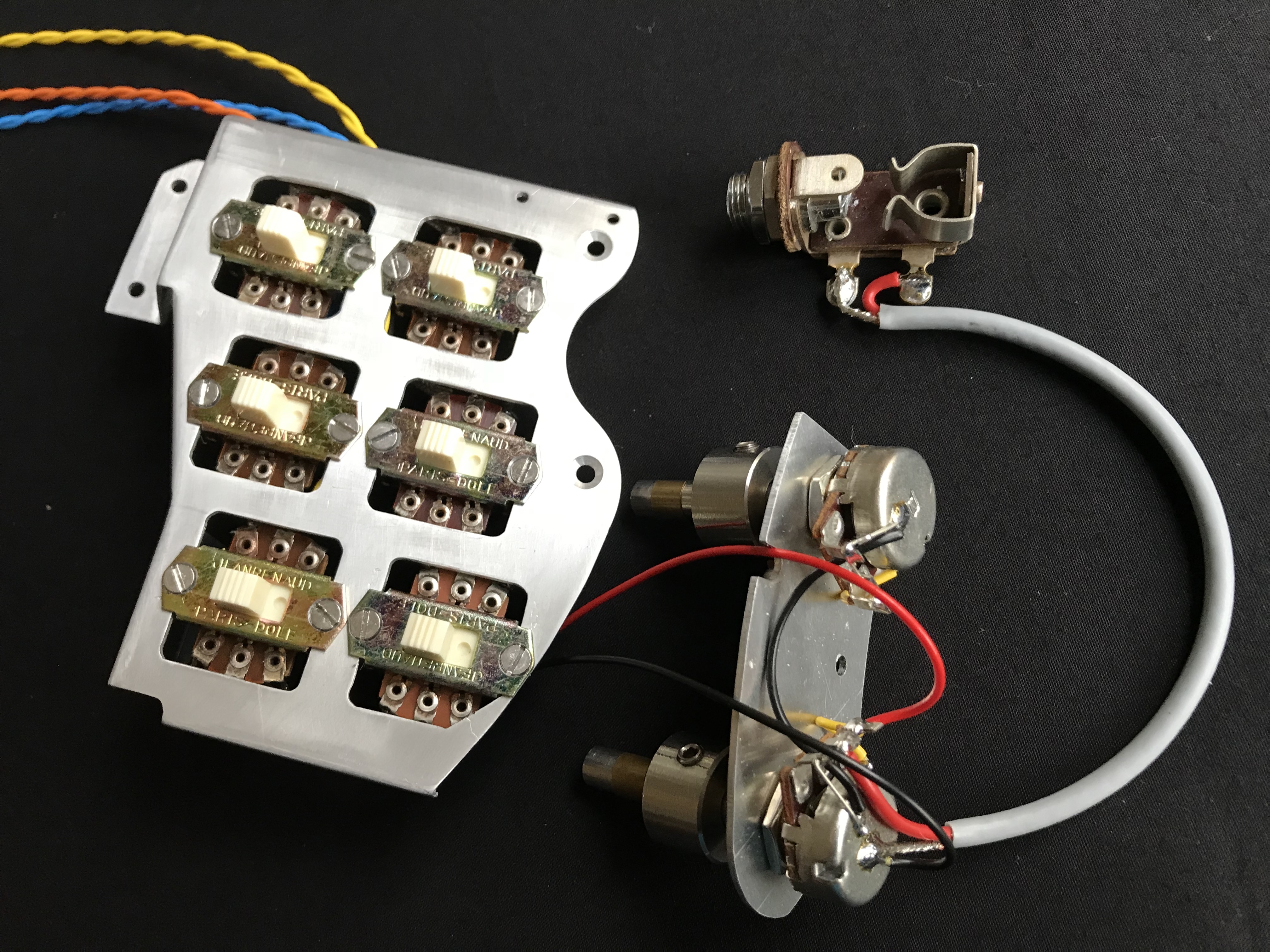 In July 2013, I bought a set of six Jeanrenaud 73CC5P DPDT parallel slide switches from Manuel Angelini (http://doxyworld.com) in France for the Red Special replica guitar build I was planning. These are a later variant of the ones Brian May fitted to his original guitar back in 1963/4 and probably cost very little, but are extremely difficult to find now.