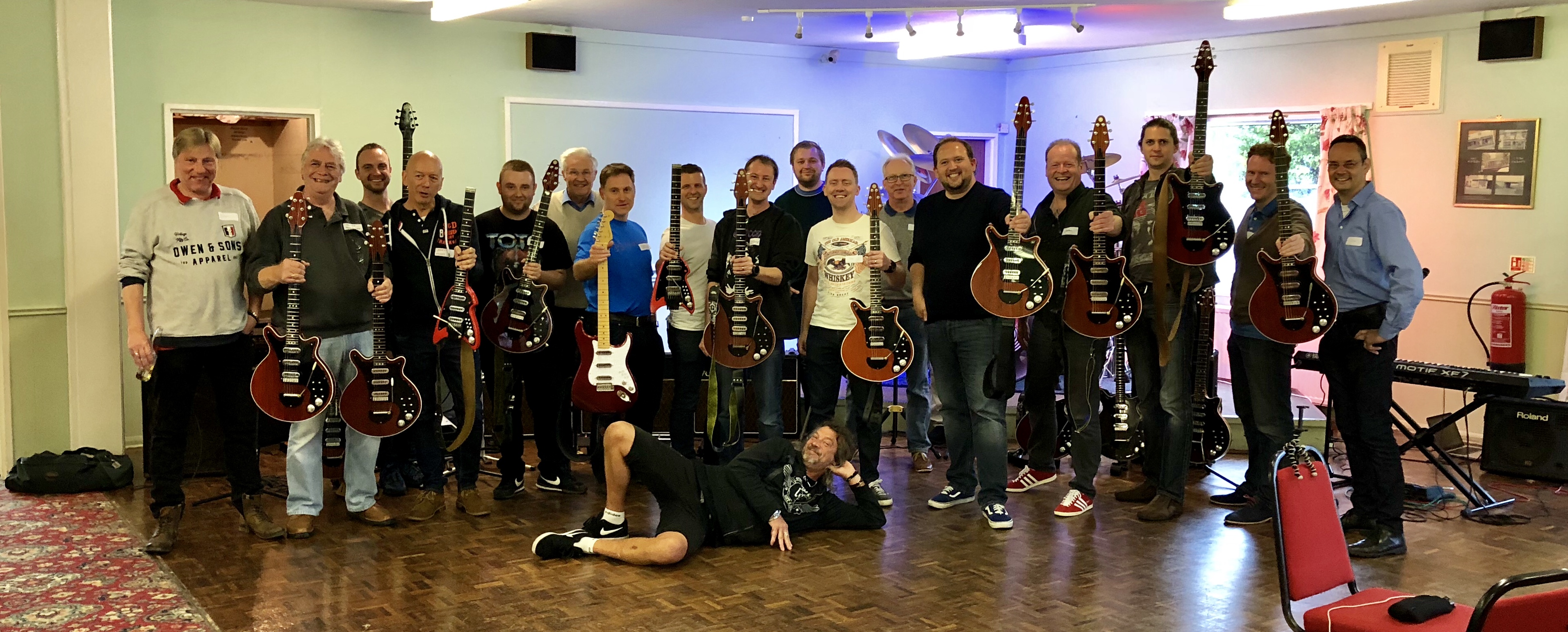 Since 2017, I have attended seven Brian May Red Special themed enthusiast meet-ups: five in the U.K. at Theale Village Hall and the Holiday Inn Reading West in Berkshire and two in Phoenix, Arizona, USA. These are primarily social events for friends from different countries with a mutual interest to get together. However, people usually bring interesting guitars, amplifiers, effects and other equipment to show and demonstrate to stimulate discussion. A number of regular attendees are either professional or experienced amateur musicians and, where possible, people will jam together.