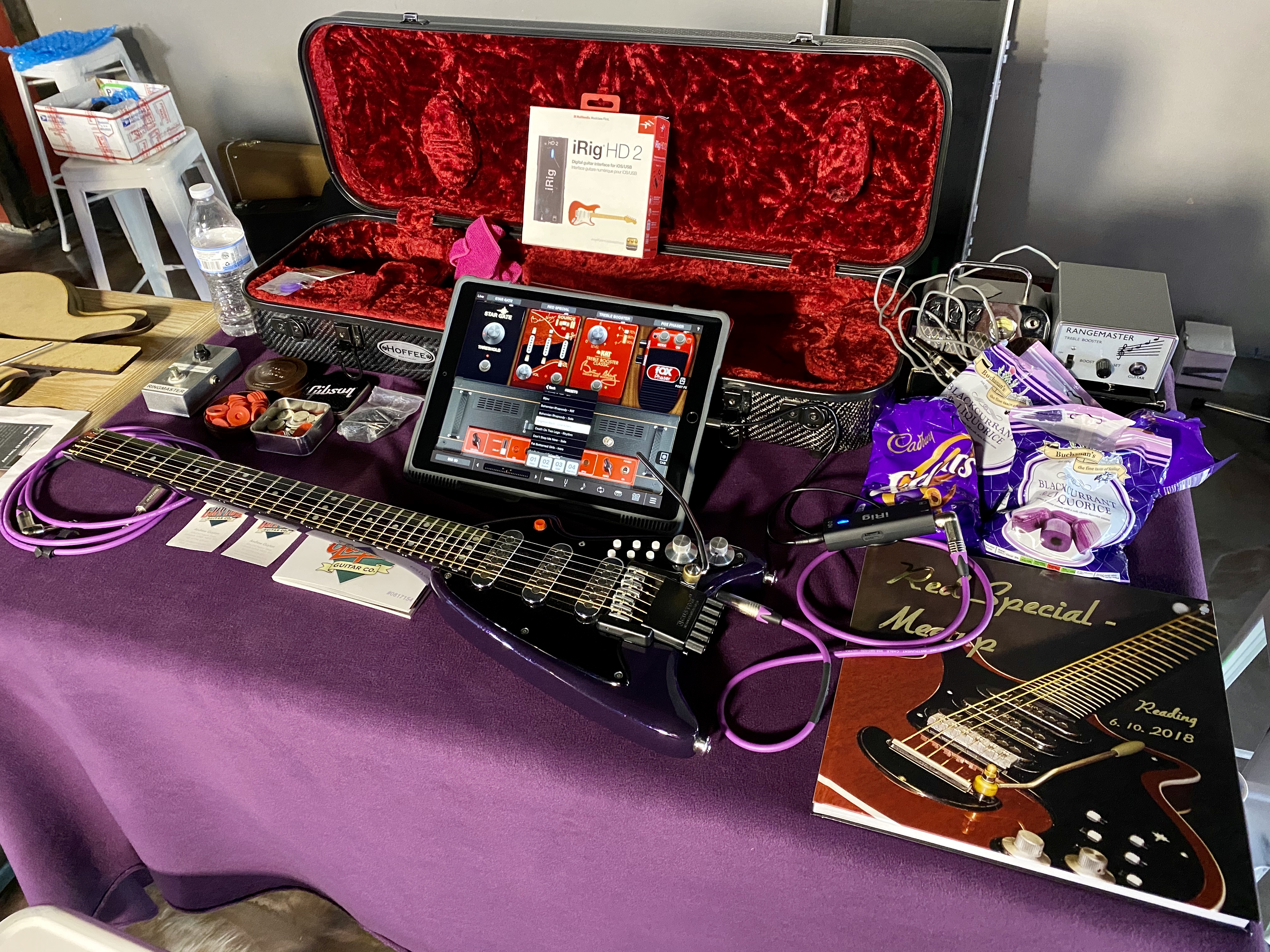 The event was attended by around twenty people including Ron Smith of The Cybershop who brought along some of his Red Special hardware range for inspection. This included a mounted ‘top hat’ style control knob which is identical to one that he recently made to replace the original that Brian lost during a Queen + Adam Lambert performance at the American Airlines Center in Dallas, TX during the 2019 Rhapsody Tour.
