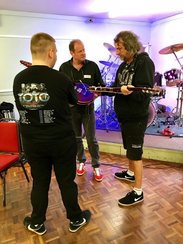 The people featured in these pictures include event organiser Jon Underhill, Julian Hemingway, Luke Timmins (lead guitarist from U.K. Queen tribute band, Supreme Queen), Martin Pitcher, Peter Michalowski (lead guitarist from Swedish Queen tribute band “Queer”), Andrew Morgan from AStrings (South Wales’ leading independent music shop), Iain Angell, Pete Malandrone and Nigel Knight. Photographs credits: Ulrich Hunger.
