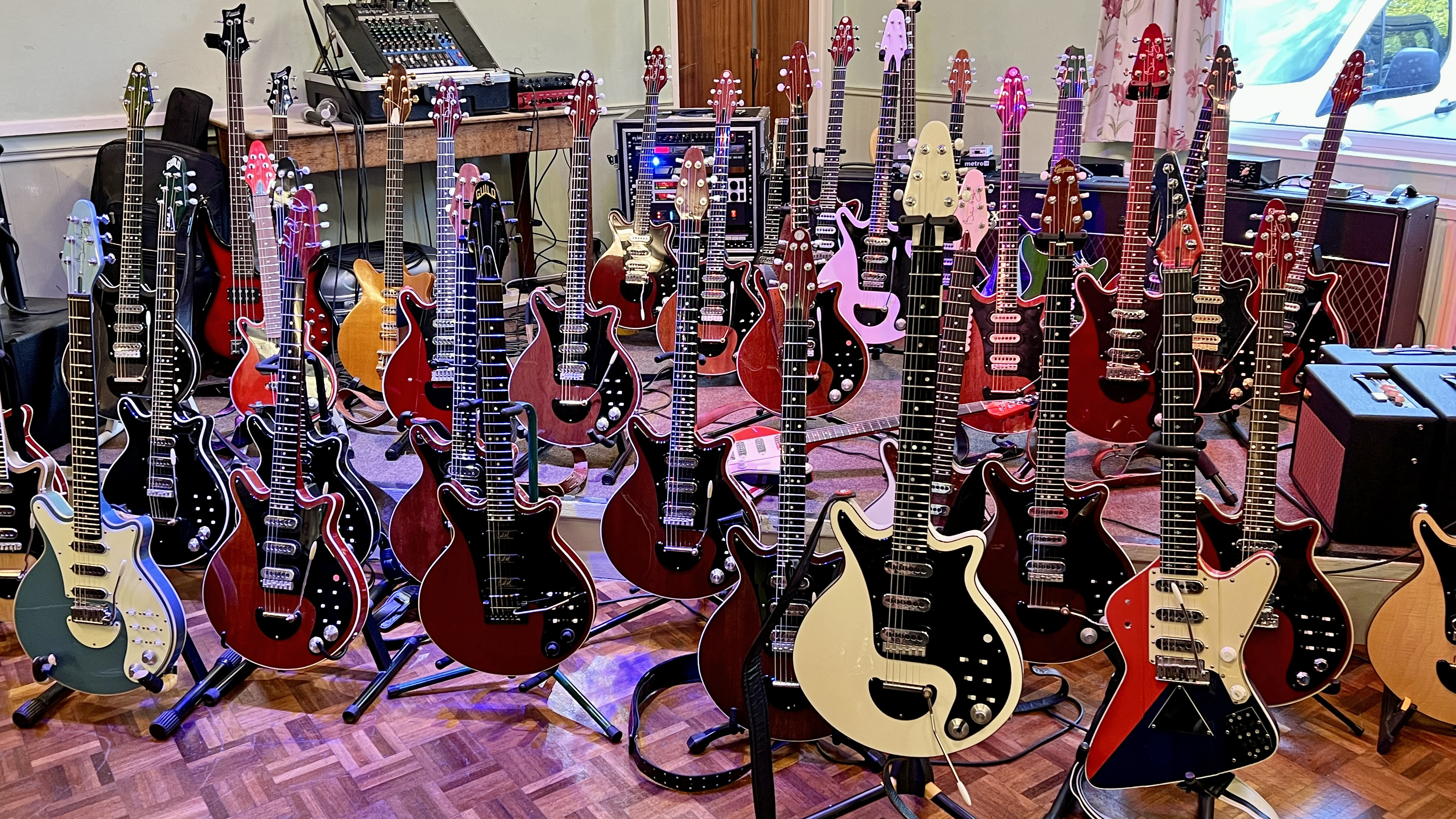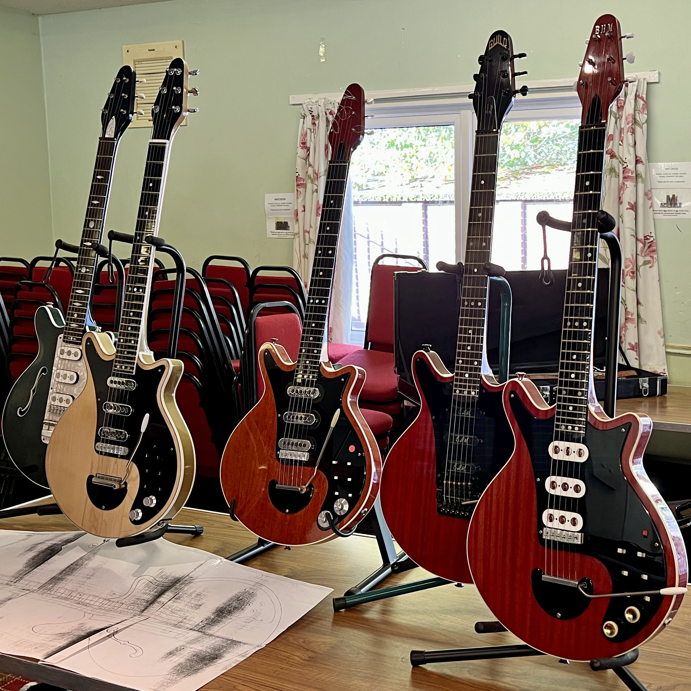 The 2022 UK Brian May Red Special enthusiast meet-up was again held at Theale Village Hall, Reading, Berkshire. The meet-up has been organised since 2017 by Jon Underhill, host of the Red Special Guitar podcast. Jon has been instrumental in growing the scope and attendance and ensuring the success and sustainability of this niche event. To organise and execute an event with 50-60 attendees and tens of thousands of pounds worth of guitars, amplifiers and other musical equipment in a small village hall requires support. In 2022 and 2021, this has been provided by Jonathan Planner, Steve McCulla, Matt Netherwood and Luke Timmins.