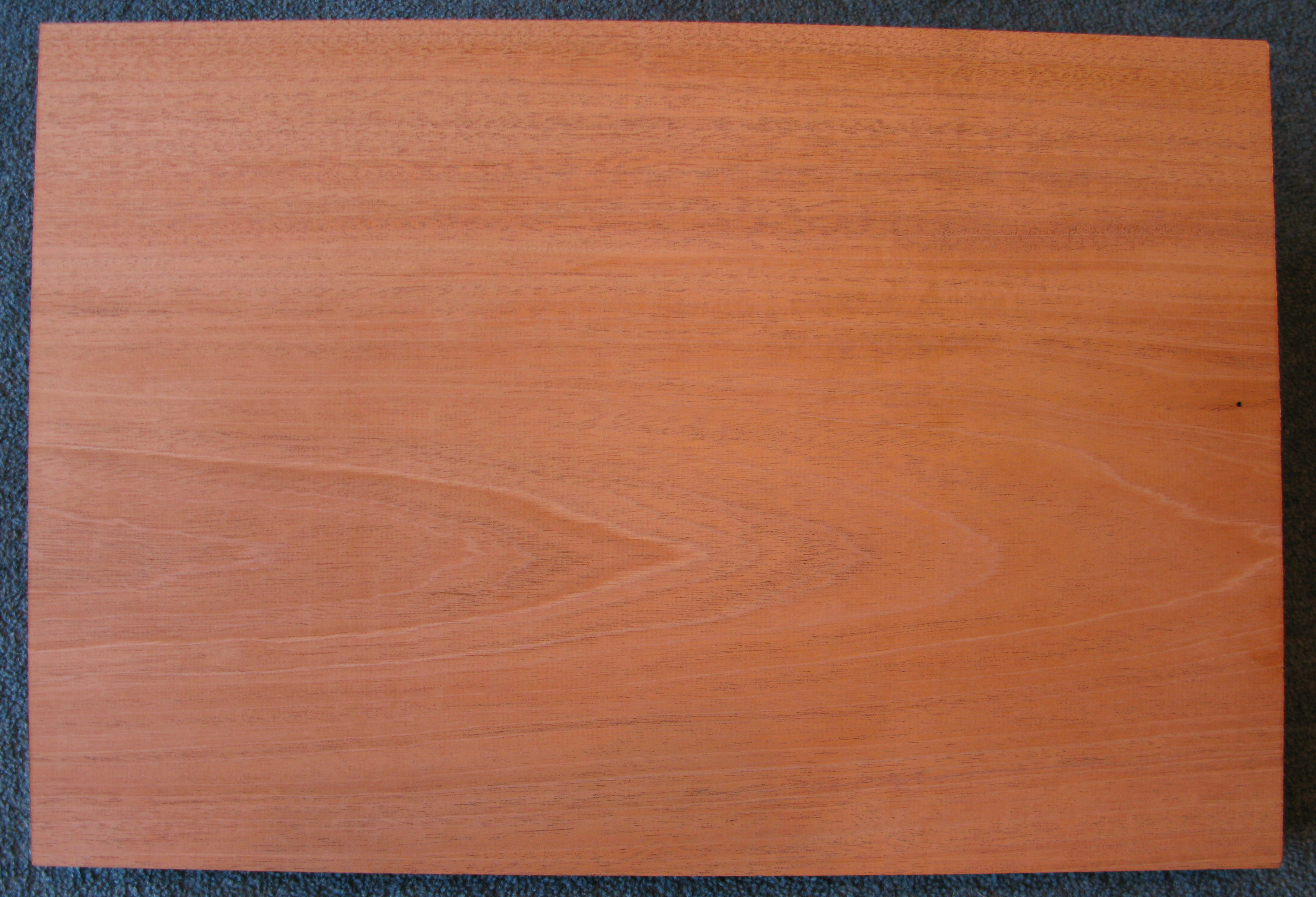 I sourced a Honduras mahogany (Swietenia macrophylla) one piece body blank measuring 21″ x 14″ x 2″ (533 x 355 x 51 mm) from Exotic Hardwoods and planed to 40 mm thick at a local joinery workshop. Before I dispatched it to Cut CNC of Uxbridge, Middlesex U.K. for 3-axis CNC routing, I had to make a judgement on where the cut would be positioned in the blank to achieve the most pleasing grain structure on the finished body. To help with this process, I made a paper template and positioned this over the blank. Two possible options became evident. The first one maximised the amount of linear grain in the uncovered part of the body while the second positioned an approximately parabolic grain feature symmetrically about the body axial centreline. My preference was for linear grain structure on the entire top and bottom faces of the guitar body like the original Brian May Red Special, but after some deliberation, I decided that option 1 would not yield sufficiently linear grain and I resolved that it was best to centralise the feature so selected option 2.