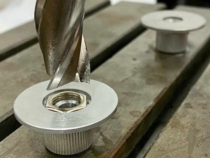 - Changed to a 6.0 mm two flute solid carbide flat nose end mill to flatten the conical end of the hole left by the jobber drill.
