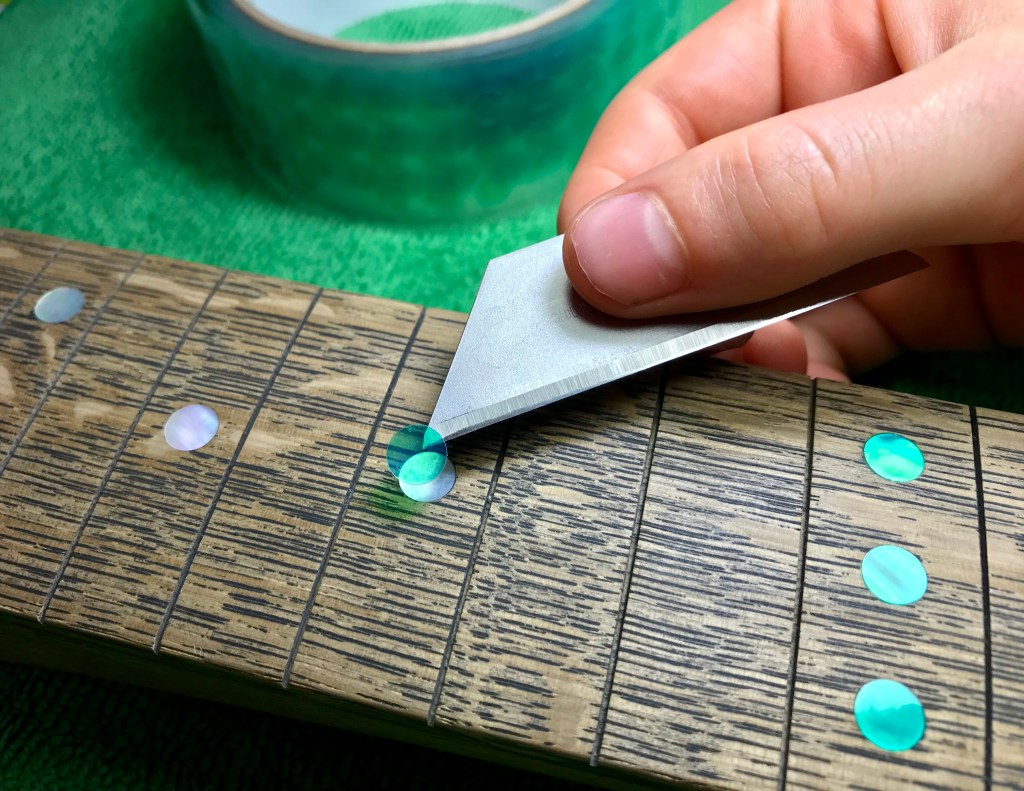 In the video below, recorded during May 2021, a year after I completed the build project, I demonstrate how to make an acetate stencil (1:1 scale PDF file embedded below) using my CNC machine to help paint on the fretboard side markings (a detail which I never completed). I also demonstrate two alternative techniques to ebonise/black coat the oak fretboard that prospective Red Special builders should consider: Liberon wood dye and black cyanoacrylate superglue. The video lasts approximately 19 minutes and consists of twelve individual sequences which are time indexed in the description.