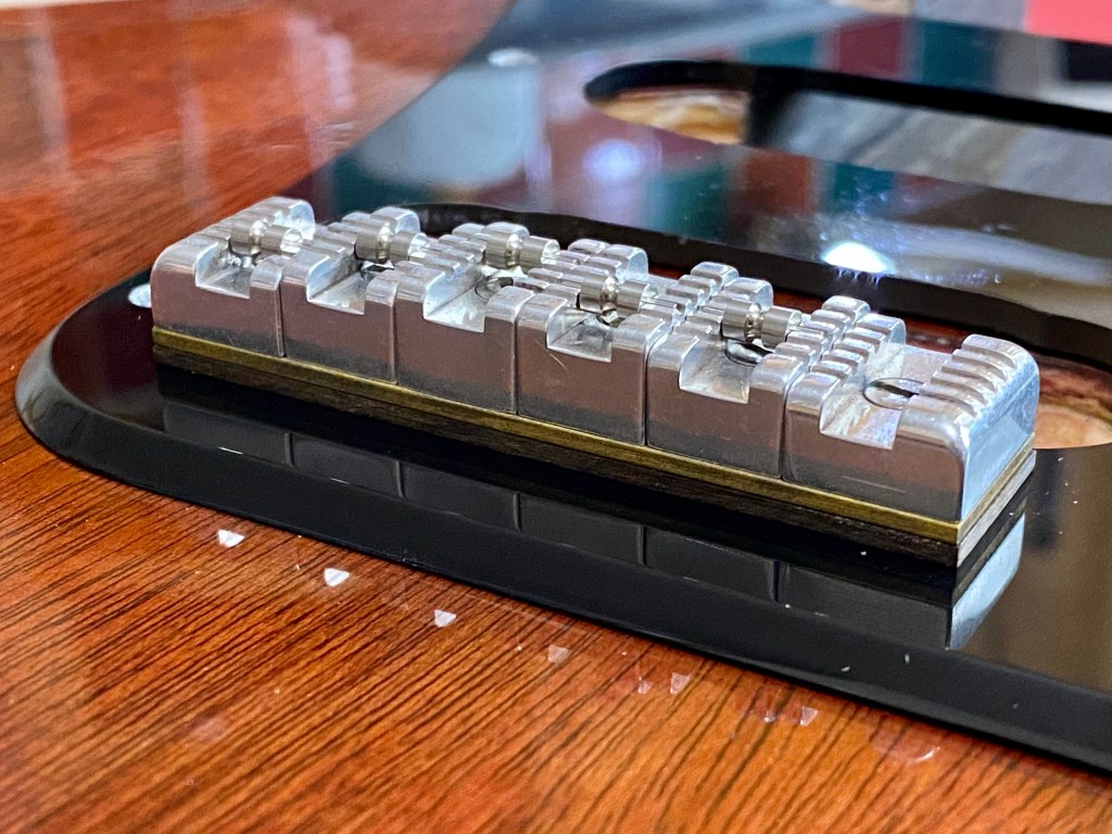 If you want to know more about the frictionless roller bridge fitted to Brian May Red Special replicas, please check out this YouTube video that I released in September 2025. I discuss design, function and installation and show you the fasteners and shims used to install it and set the desired string action. To illustrate the discussion, I show you two professionally engineered assemblies with different interpretations of Brian’s original design and compare these with the one I made in January 2022 for a brief time lapse video on the CNC milling with no commentary.
