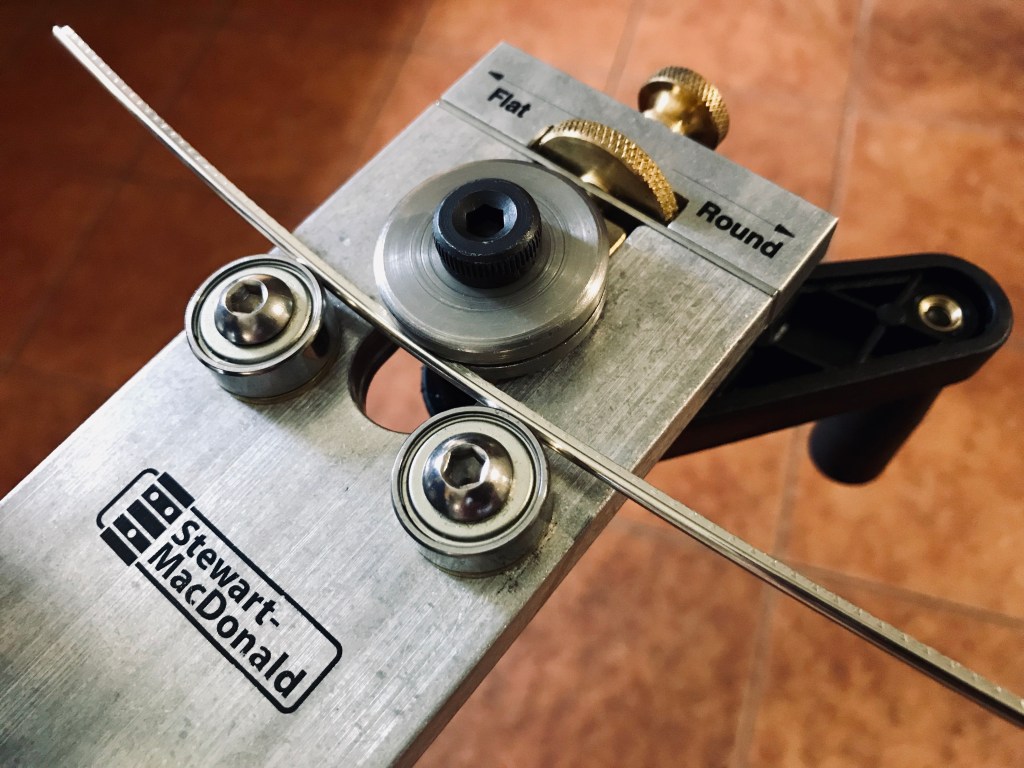 - Fret arbor press (StewMac). I found that with correctly radiused and de-tanged fretwire and CNC cut arced fret slots, the arbor press was unnecessary.