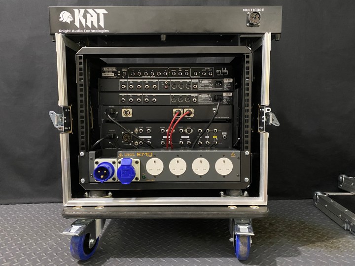 In late 2020, I was offered the opportunity to acquire a Brian May style live rig originally built for Andy Barnett by Nigel Knight of Knight Audio Technologies (KAT). The rig was contained in an SKB roto-molded 6U shallow rack case (model 1SKB-R6S) and consisted of the following 19″ rack units: